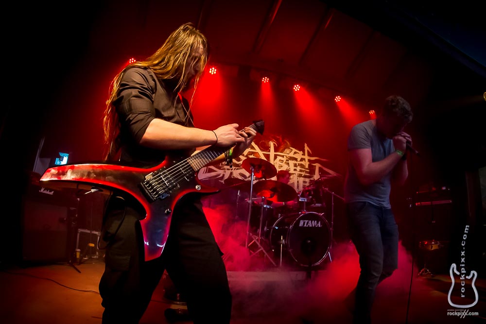 Fünf junge Musiker aus Kiel betreten die Bühne und rocken (Ich hoffe mal, man sagt es auch bei Metal so.) mit eigenen Songs los. Da ich mich für meinen persönlichen Musikgeschmack mit Metal immer etwas schwer tue, freue ich mich, wenn eine gut erkennbare Melodie aus den Instrumenten rauskommt.