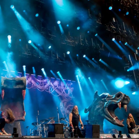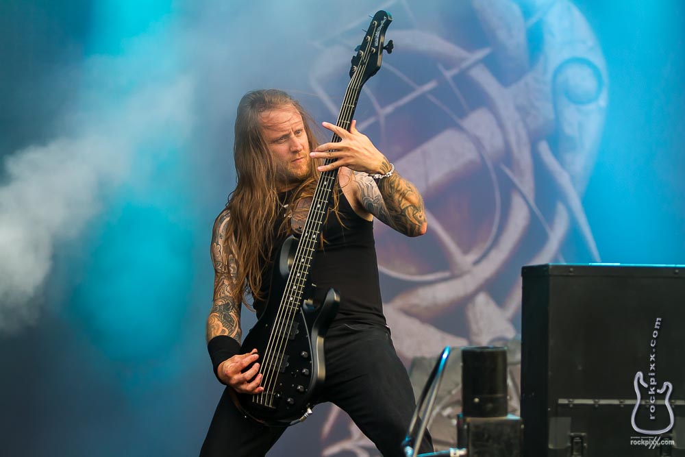 Was mir zusätzlich zur extremen Spielfreude und der guten Laune auf der Bühne bei „Amon Amarth“ noch auffällt ist Folgendes: Obwohl die Musiker auf der fotografisch ungünstig, weil sehr hoch aufgebauten True Metal Stage spielen, bekommen wir sie dennoch ausreichend zu Gesicht. Sie spielen weit vorne am Bühnenrand und verschwinden nicht irgendwo im Hintergrund der Bühne.