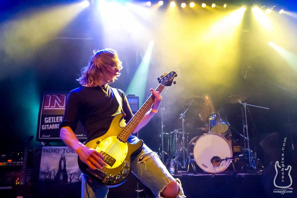 So, jetzt ging es für mich wieder mit bekannten Bands weiter: Als nächstes enterten „Ivory Tower“ pünktlich die Bühne und rockten gleich richtig derbe los. „Richtig derbe“ allerdings nicht in der Richtung „ohrenbetäubender Krach“, sondern vielmehr in der Richtung „richtig guter und sauberer Sound, gute Melodiebögen, ausgefeilte musikalische Arrangements und eine gute Bühnenshow“.