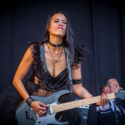 Zum zweiten Song kommt dann noch Jen Majura an der Gitarre als Verstärkung dazu, ein wirklicher optischer Leckerbissen, der sich dennoch harmonisch in das ansonsten schräge Aussehen der anderen Bandmitglieder einfügt.
