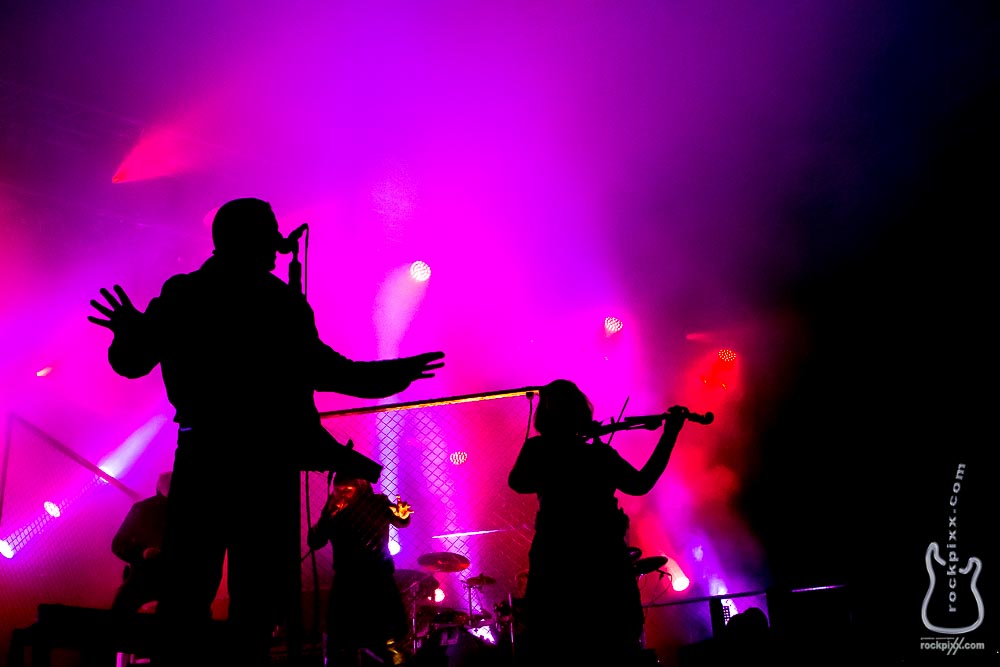 Wenn mitunter das Festival-Publikum besser ausgeleuchtet ist als die Musiker auf der Bühne, dann läuft irgendwie etwas gewaltig verkehrt. Zwei Songs waren zum Fotografieren gestattet, den ersten konnte ich ganz bequem mit verschränkten Armen im Graben stehen und mir die Musik anhören. Von der Show waren außer ein paar Scherenschnitten (das müssen wohl die Musiker gewesen sein) nicht viel zu sehen. Im zweiten Song wurde es auch nicht besser, so dass wenig vernünftiges Bildermaterial dabei herausgekommen ist.