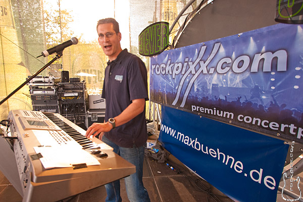 Es ist schwierig, am frühen Abend im Hellen die Aufgabe zu haben, die Leute auf dem relativ leeren Bühnenvorplatz an der MAXBühne zum Verweilen zu bringen. Gerade, weil hier der Platz kein abgeschlossenes Areal ist, sondern weil er direkt am Bahnhof liegt und sich zudem noch auf einer der Haupt-Flanierrouten zwischen der Innenstadt und der „Unser Norden-Bühne“ befindet.