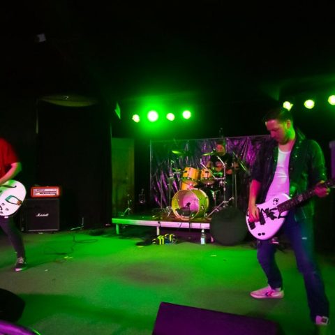So, nun also deutlich nach Mitternacht „The Smokin‘ Guns“ als achte Band der „Develish Night“. Eine weiße Gitarre, ein weißer Bass und ein Drumset bilden das Gerüst für „Gute Laune Punkrock“ aus Rendsburg.