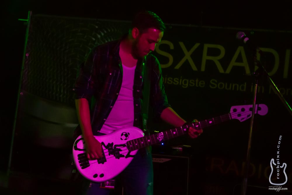Wenn ich ehrlich sein soll, dann hatte ich bislang mit „Punkrock“ immer etwas „schrägere“ Outfits der beteiligten Musiker und dafür deutlich reduziertere musikalische Fähigkeiten assoziiert. Wenn man böse sein will, dann könnte man auch schreiben, dass bei vielen Punkrockbands das passende Outfit deutlich mehr Aufmerksamkeit als die Erlangung musikalischer Fähigkeiten erfordert. Ganz anders dagegen bei „The Smokin Guns“. Die sehen erschreckend „normal“ aus, spielen dafür aber verdammt gute Musik. Das sorgt sofort für gute Laune und insofern stimmt die Einschätzung hinsichtlich „Gute Laune Punkrock“. Einzig die dunkelrosa eingefärbte Beleuchtung auf der Bühne will nicht so ganz zum Musikgenre passen, aber ich bin mittlerweile zu müde, um mich da noch großartig drüber aufzuregen. Die Musik passt und die drei da vor mir geben alles. So soll es sein.