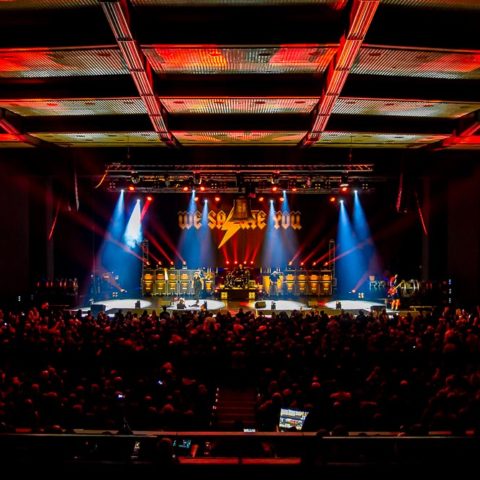 Nun also die nächste Stadt, das nächste Hotel und die „Jahrhunderthalle“. Nachdem dort bereits 1976 AC/DC höchstselbst gespielt hatten, ist das also für alle Fans ein geschichtsträchtiger Ort. Und genau wie letzte Nacht in Kempten, so ist auch diese imposante Location gut gefüllt – angesichts der relativ jungen Bandhistorie von „We Salute You“ und angesichts des Termins (Sonntagnacht vor Sylvester) in einer an Veranstaltungen nicht gerade armen Stadt, eine grandiose Leistung im Vorverkauf.